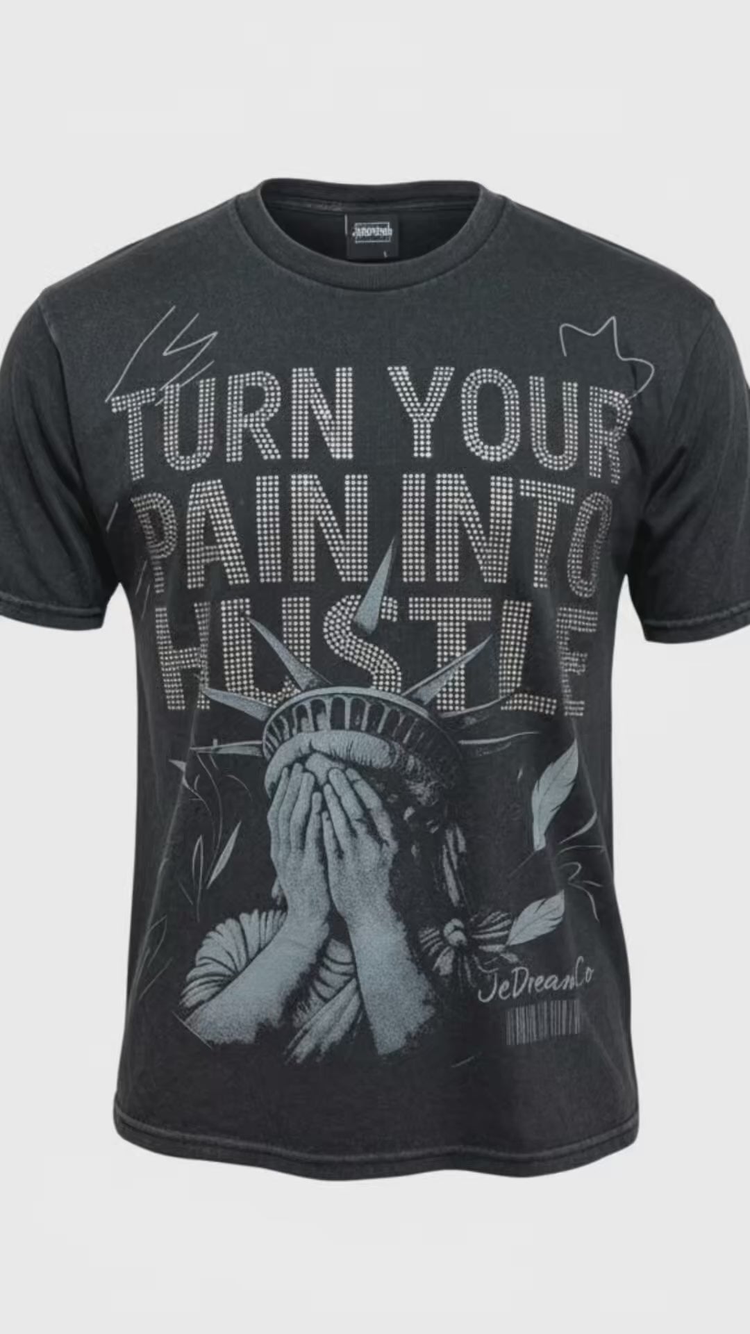 Turn Your Pain Into Hustle™ Oversized Acid-Wash Tee (Rhinestone Edition)